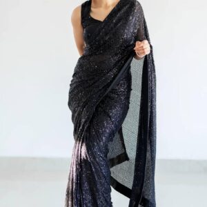 Launching new premium quality crunchy saree with self sequence weaving pattern collection