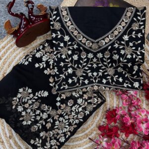 Launching new faux Georgette Digital Print & lace coding sequice work saree collection