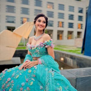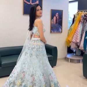 Launching 3.5 meter flare lahenga butterfly net embroidered sequins work with cancan & canvas patta