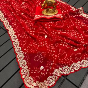 Presenting New Designer pure Ajrakh Gajji Bandhej printed soft Bandhej printed saree collection