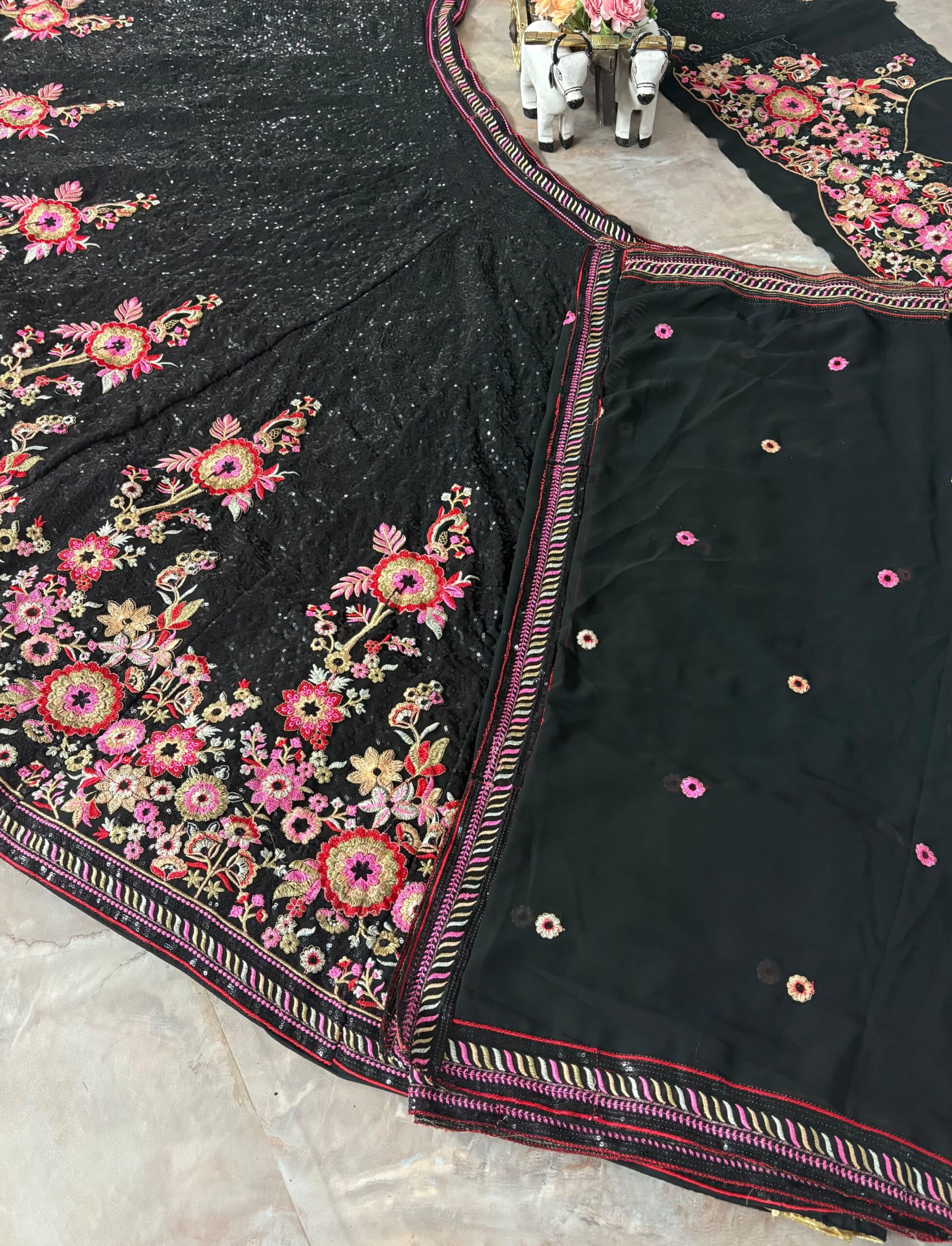 👉 *Lehenga work- Embroidery Sequins Work With Cancan & Canvas Patta*