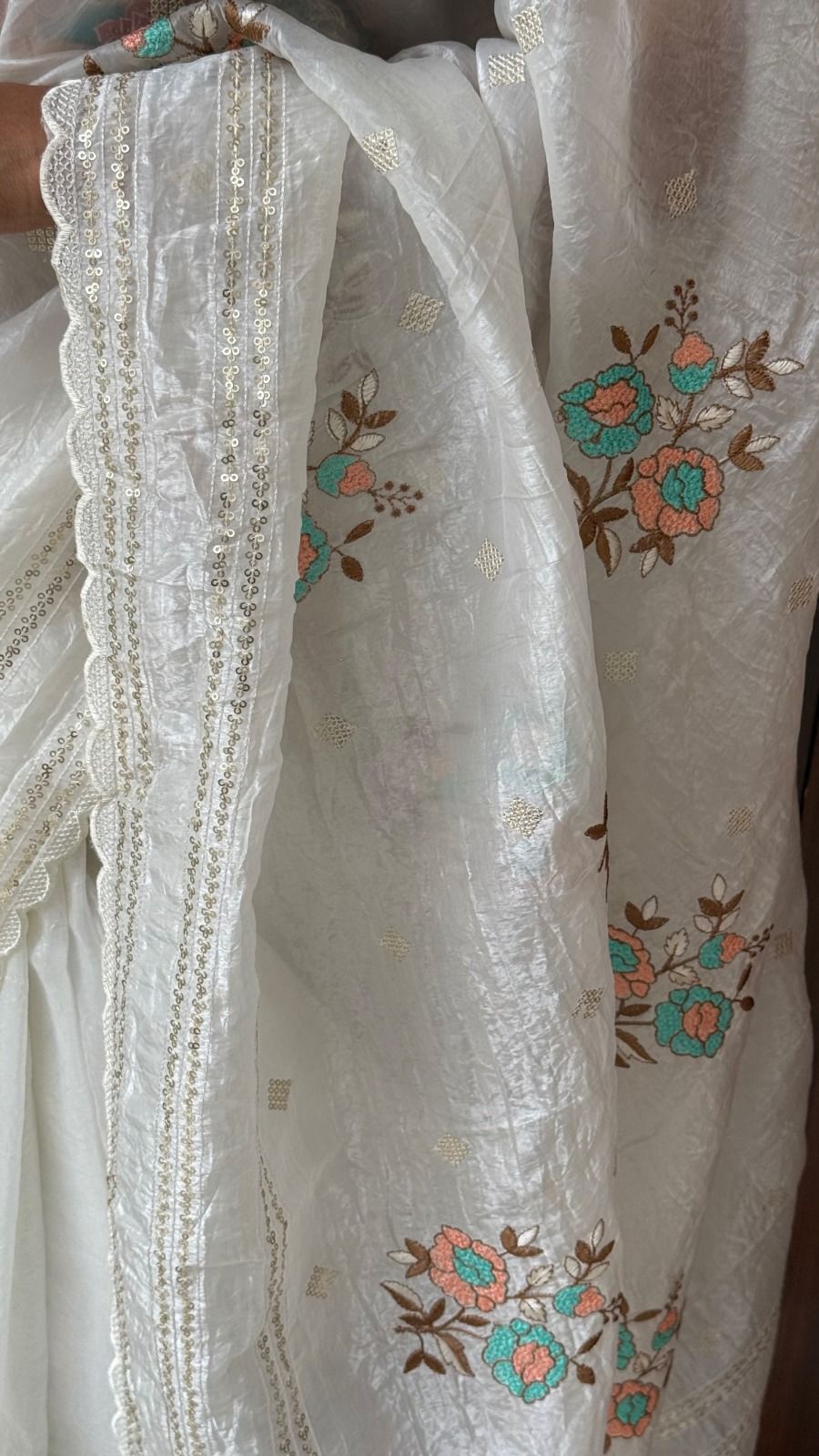 *Premium Crunchy Saree With Self Sequins Weaving Pattern All Over The Saree With Scallop Border😍*