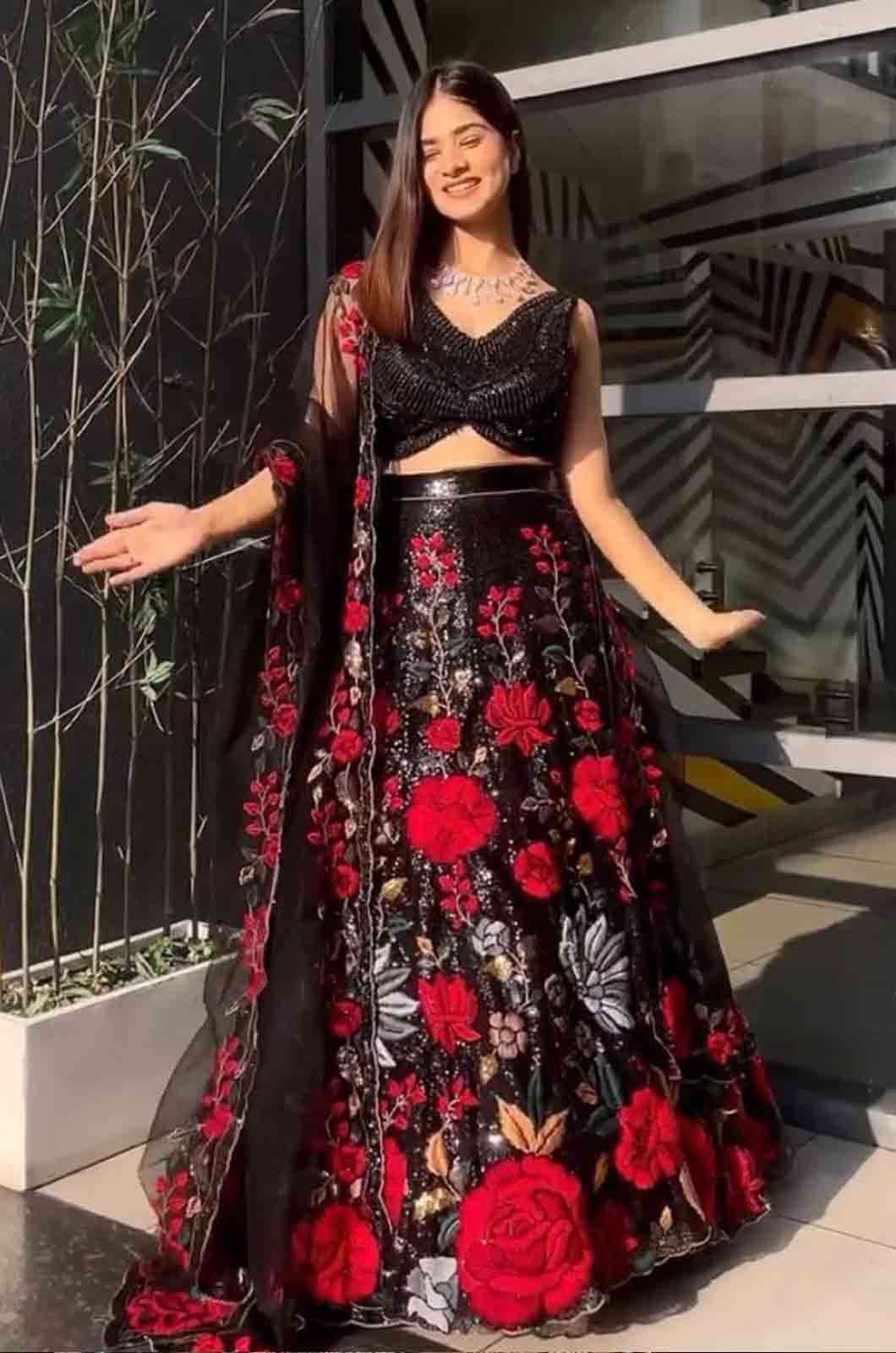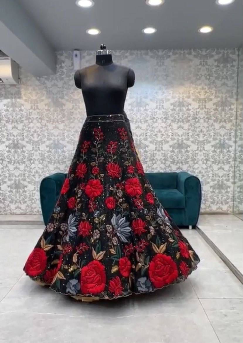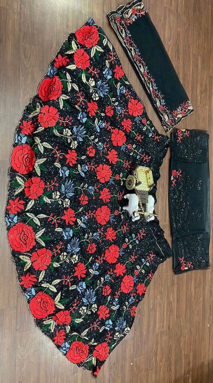 SKU: N/A Category: Lahenga Blouse with Dupatta set Tags: Black lahenga, Designer embroidery work lahenga, Lahenga blouse with duppata set