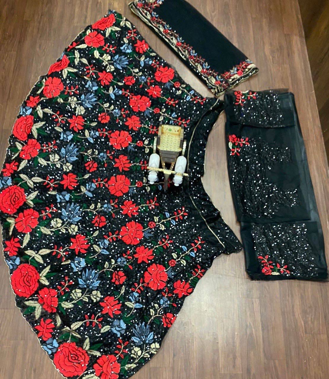 Launching 4 meter flared fox Georgette sequence embroidery work Lahenga collection