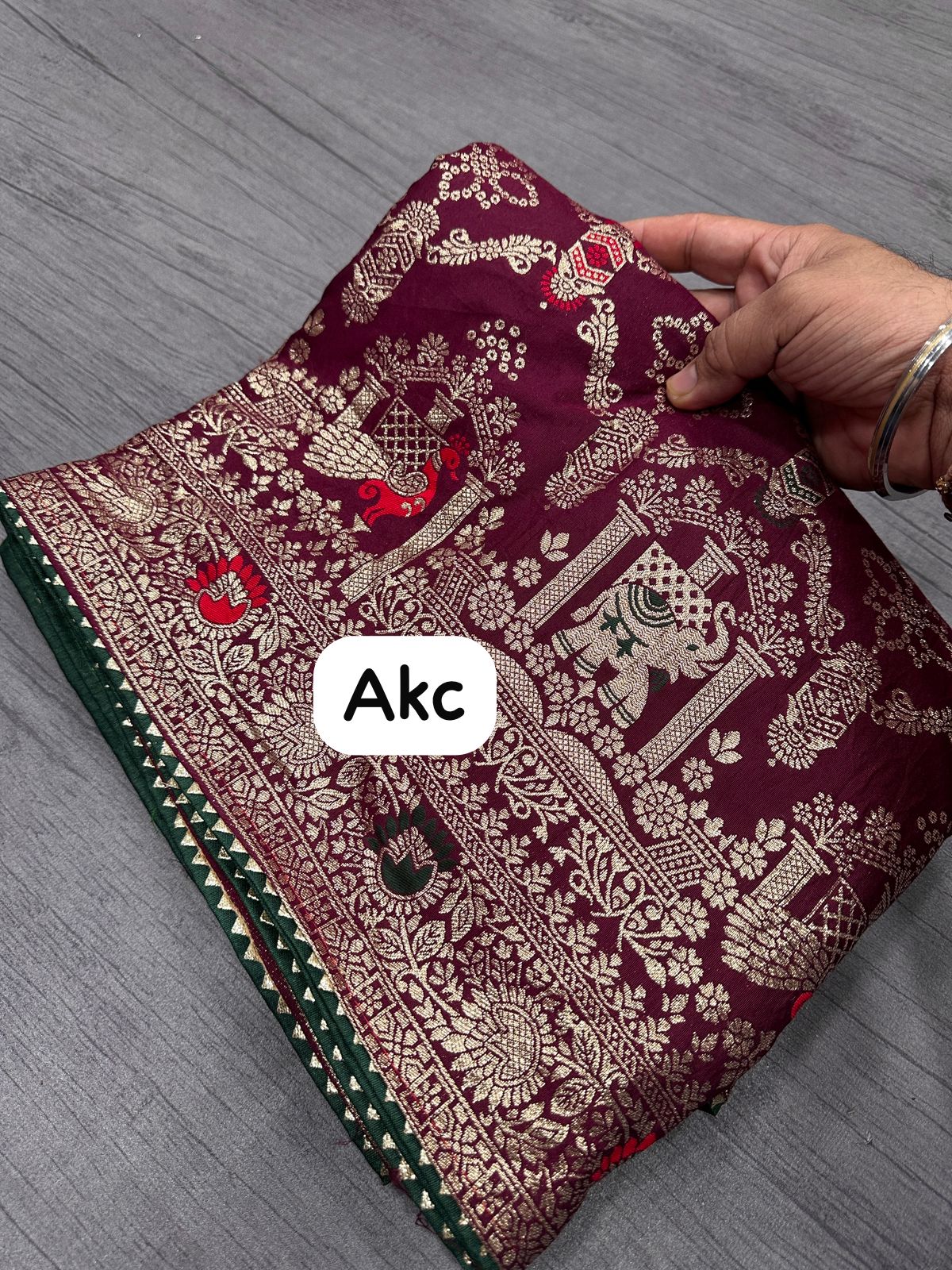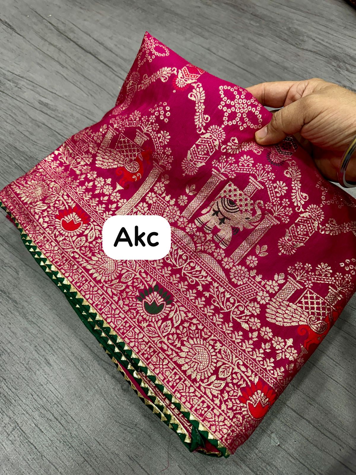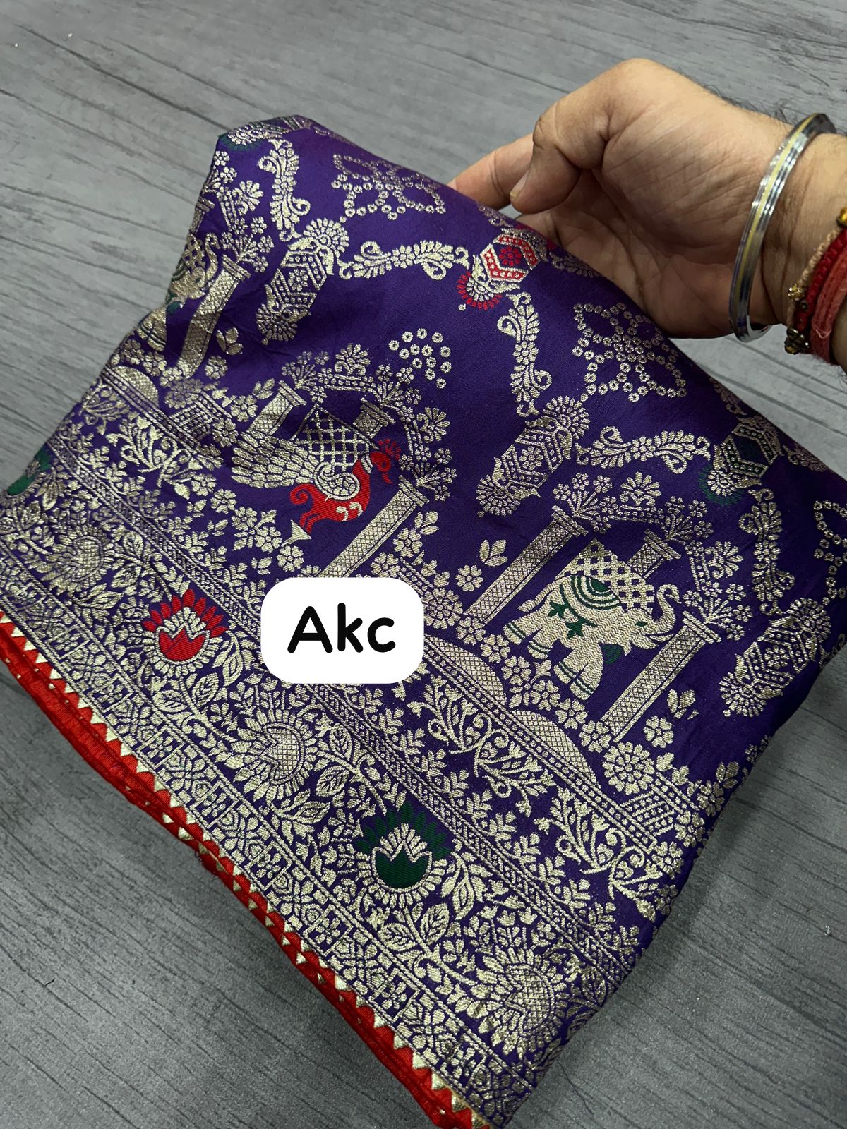 Saree :~ Pure Dola silk with Zari weaving Saree with zarkan Pallu border & samosa lace border