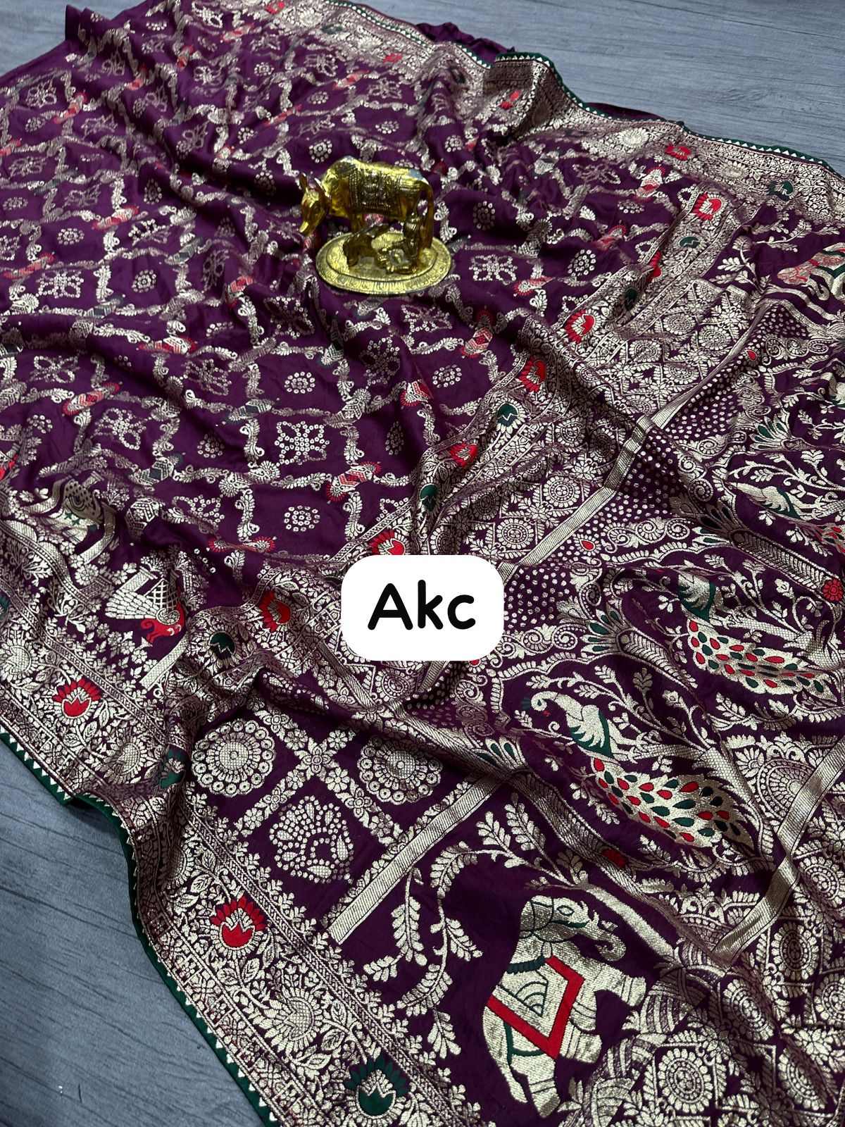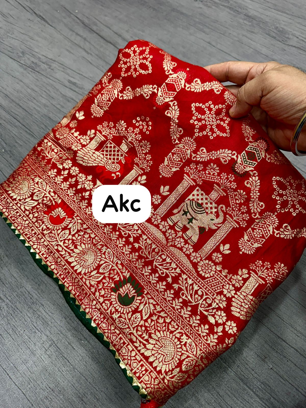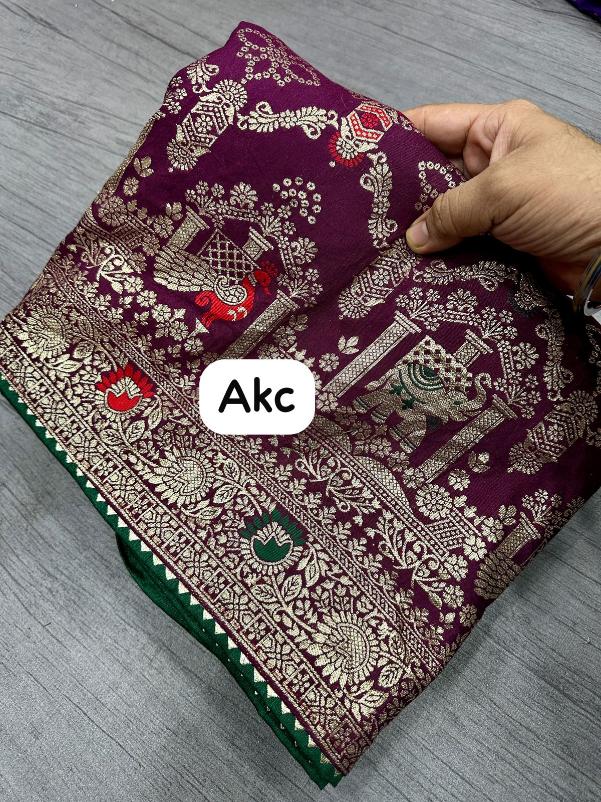 Saree :~ Pure Dola silk with Zari weaving Saree with zarkan Pallu border & samosa lace border