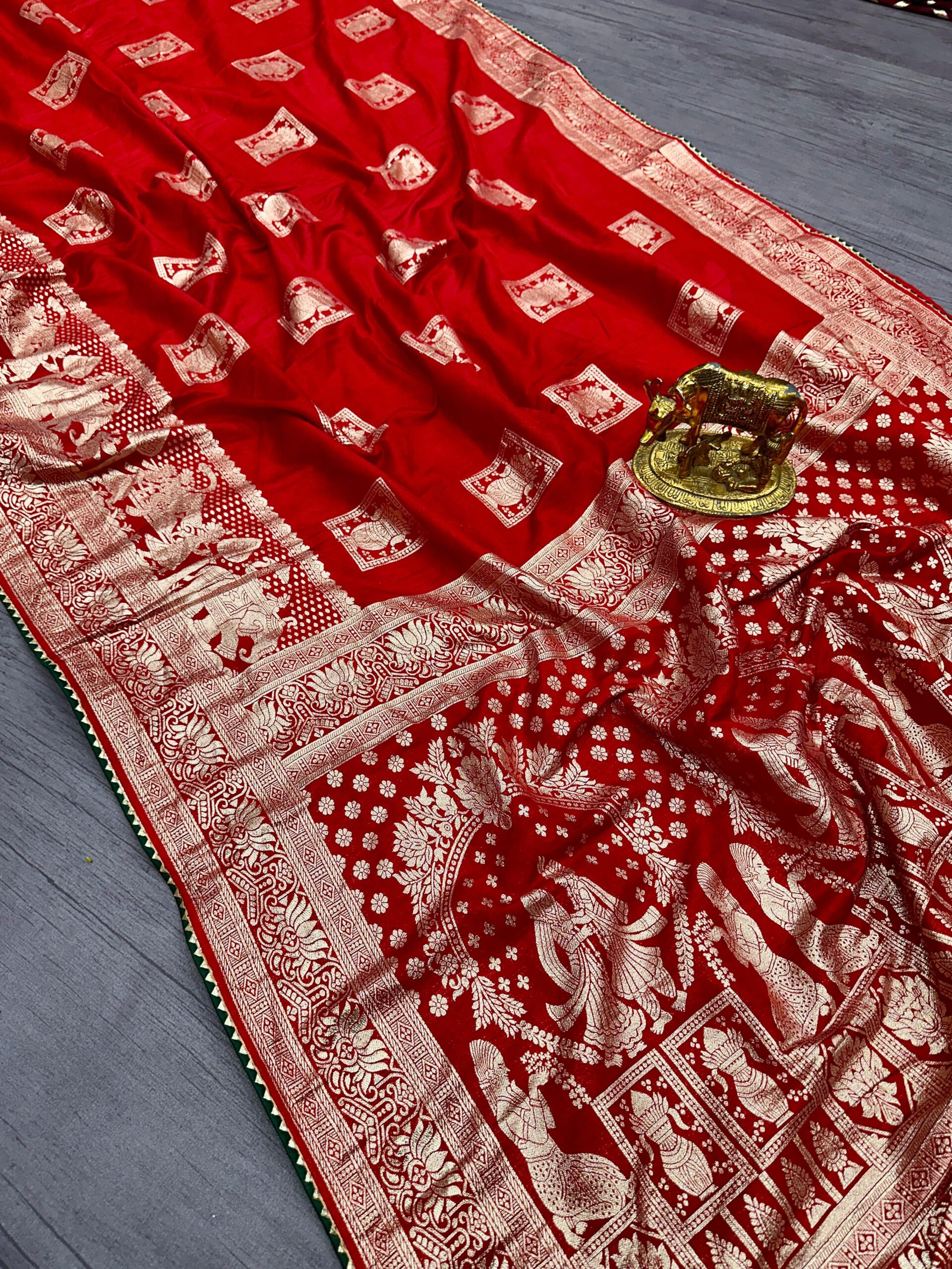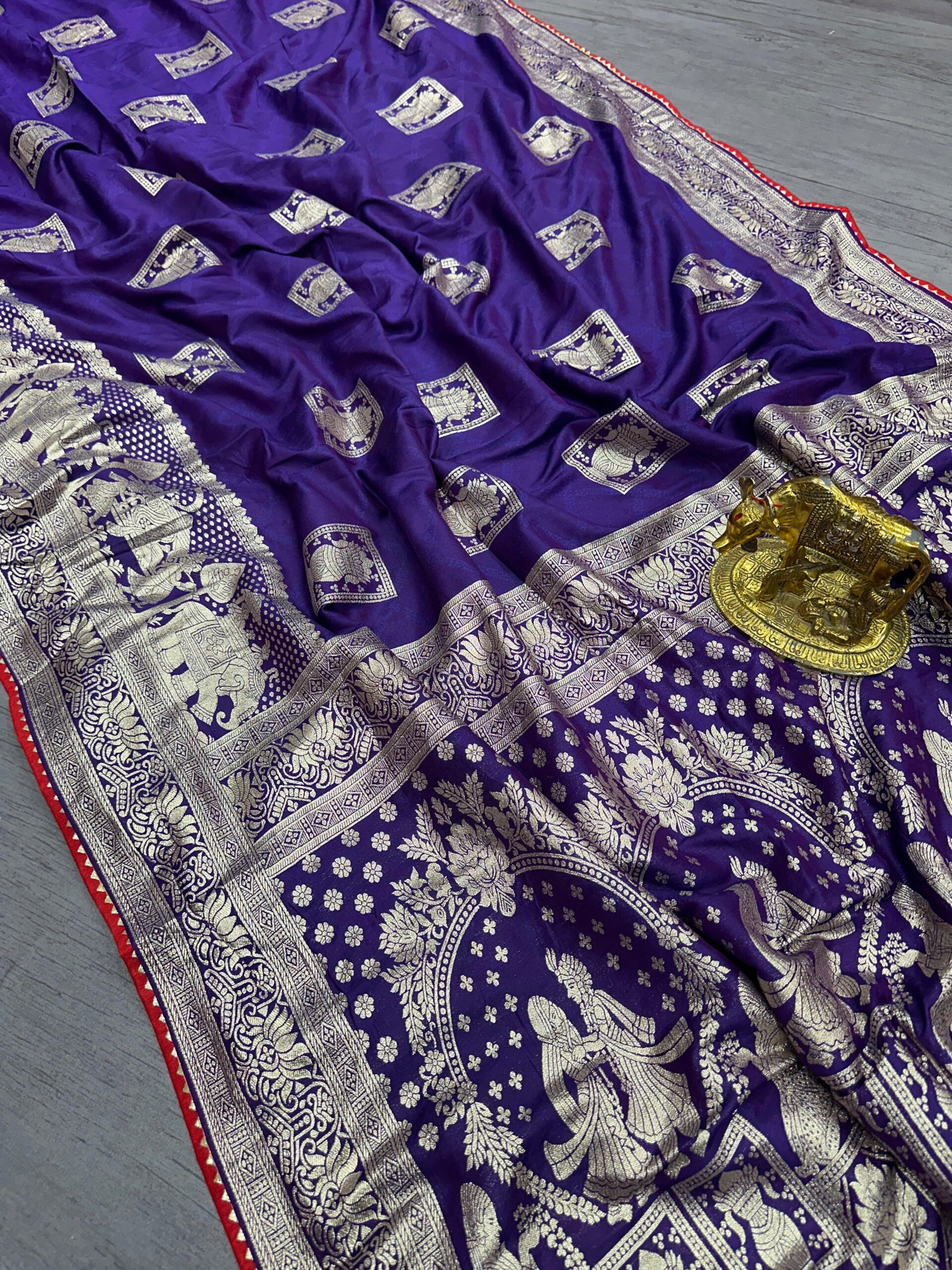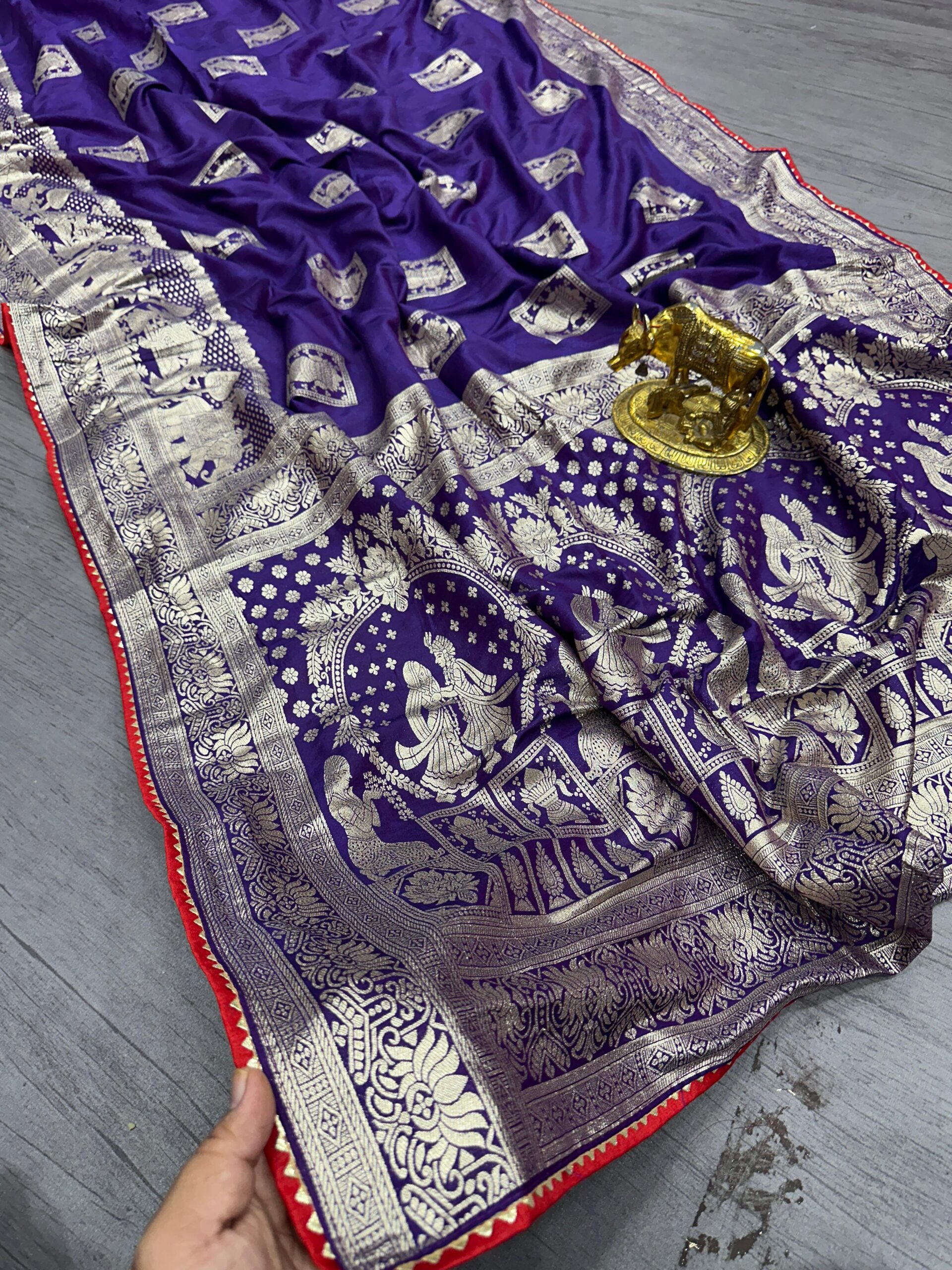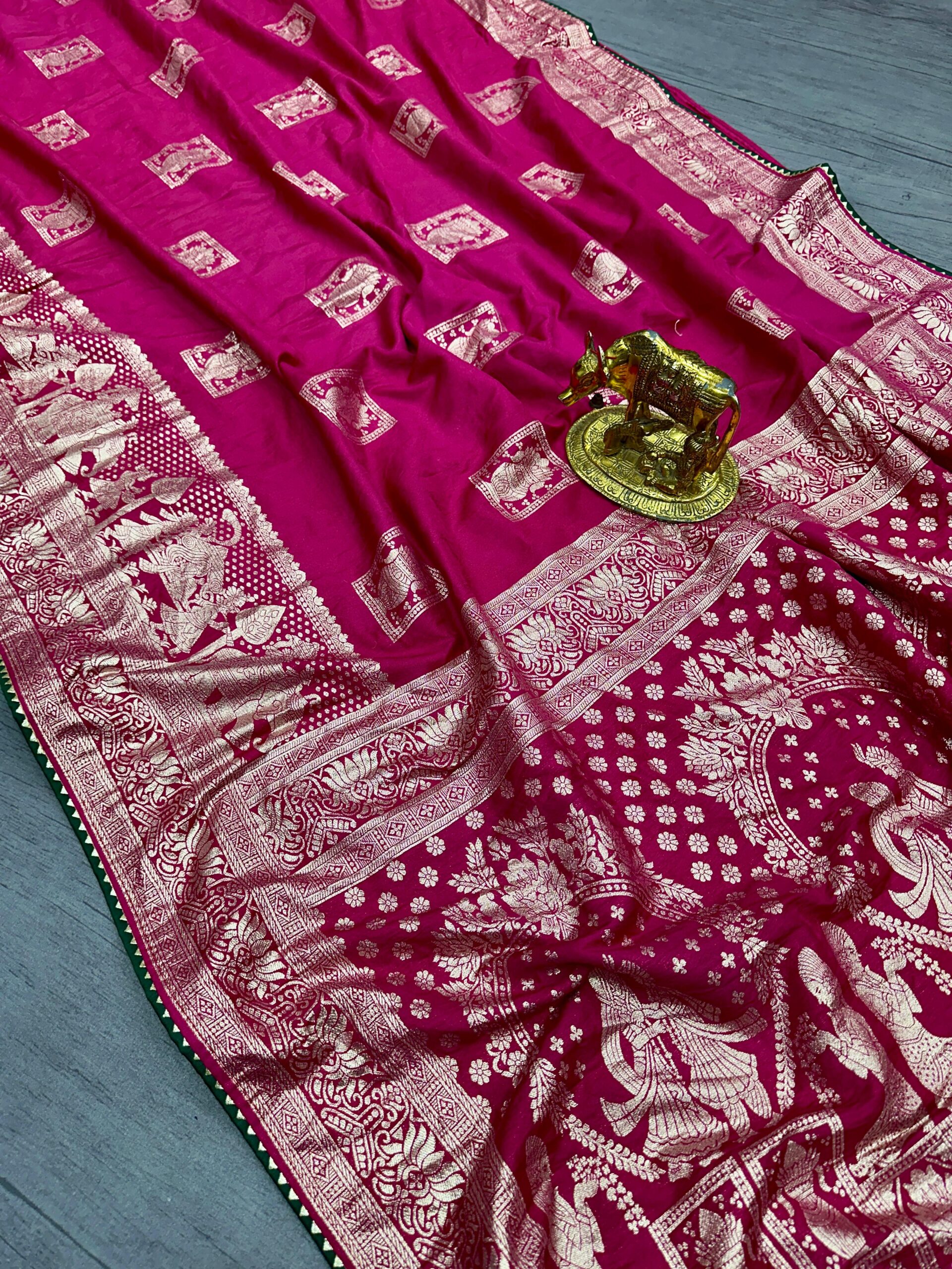 Saree :~ Pure Dola silk with Zari weaving Saree with zarkan Pallu border & samosa lace border