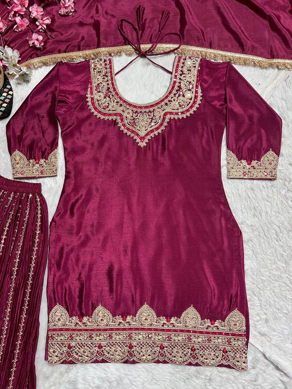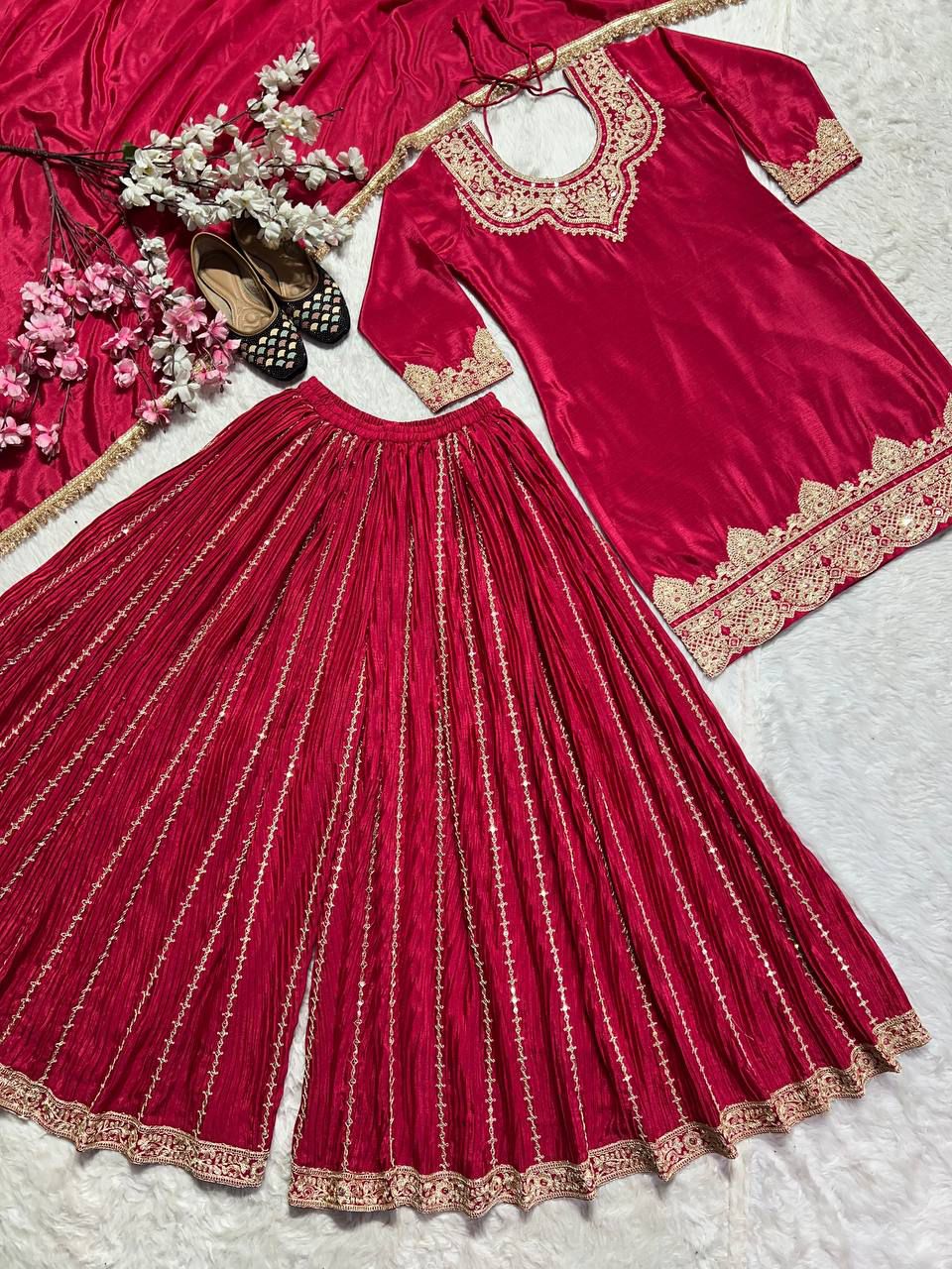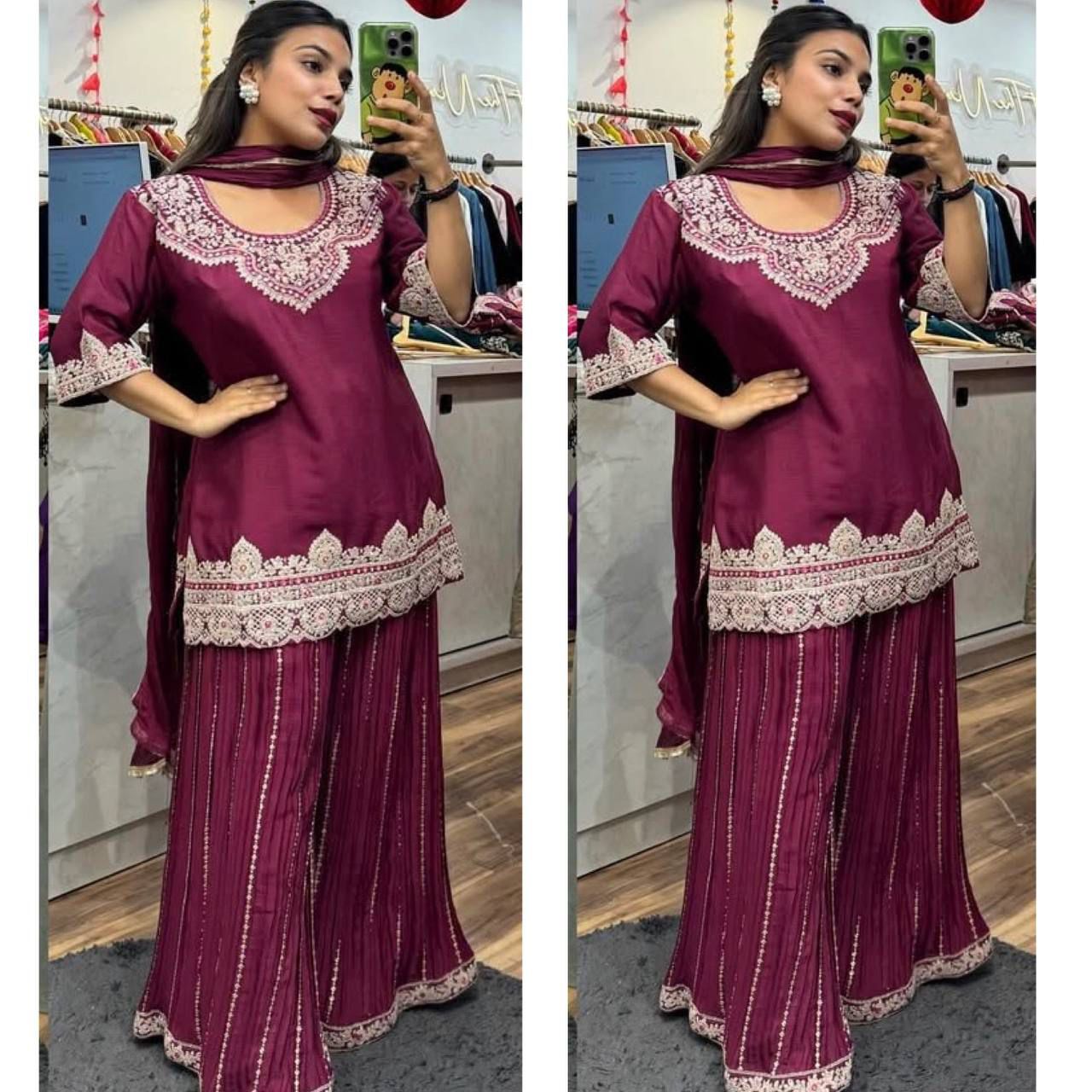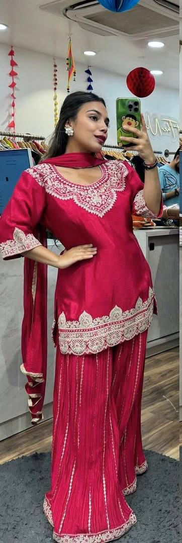 ๐*Sharara fabric* :Pure Heavy Chinnon Silk With Heavy Embroidery Coding Sequence Work *(FullyStitched)*