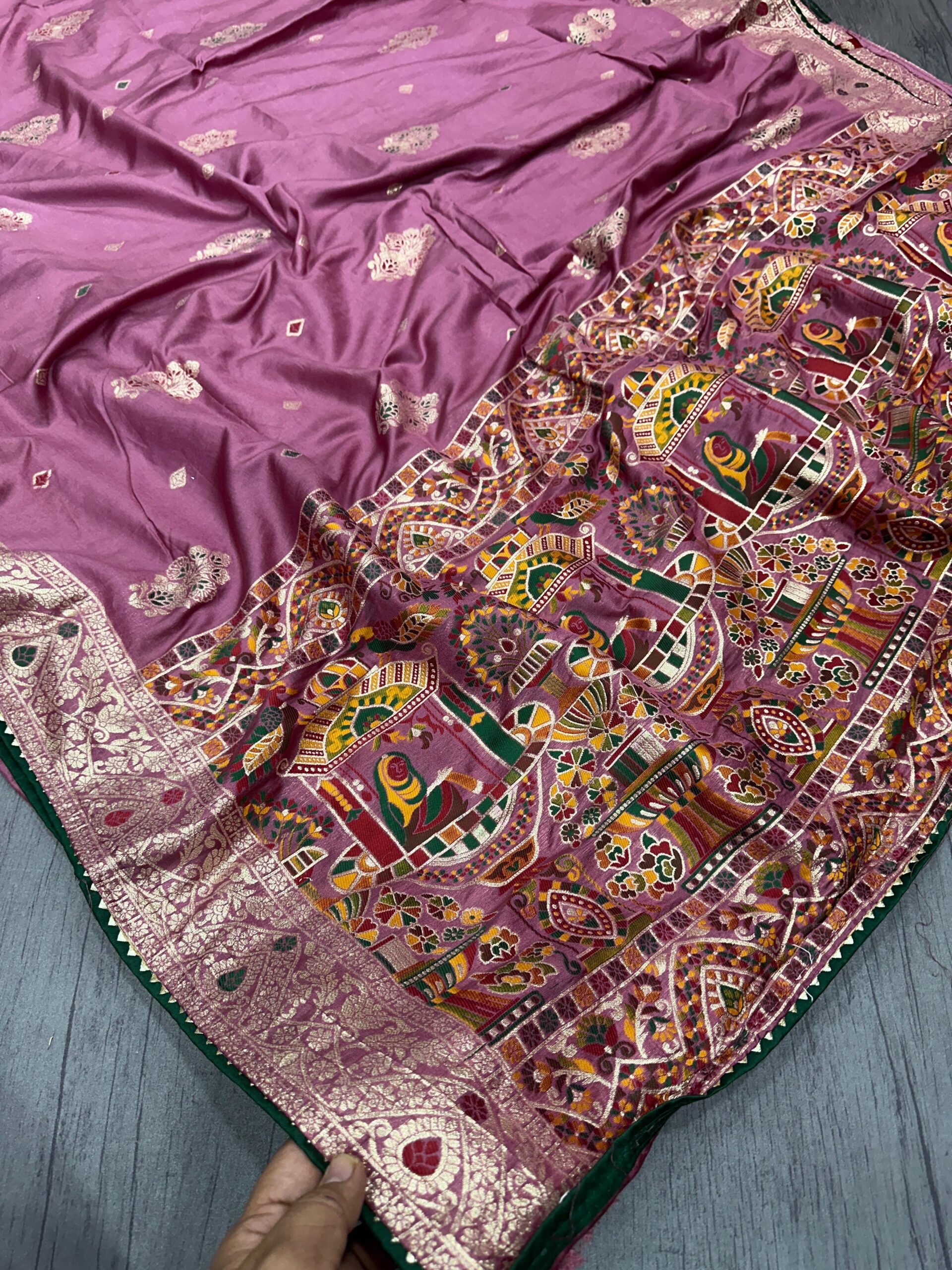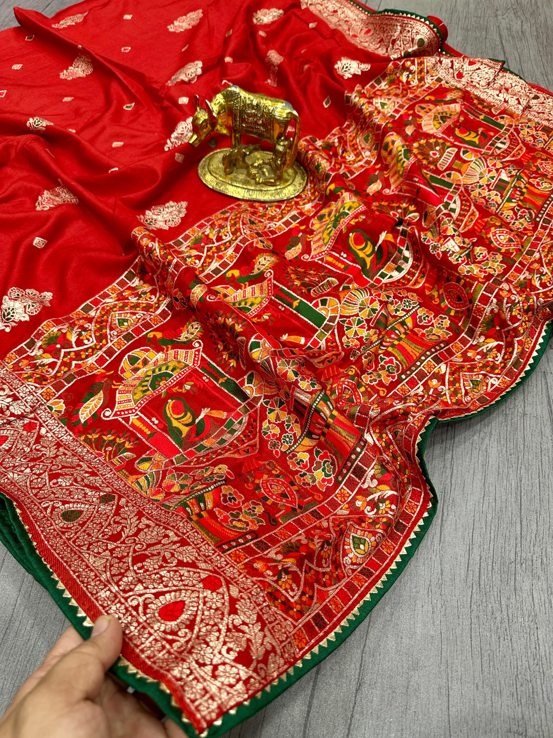 Saree :~ Pure Dola silk with Zari weaving Saree with samosa lace border
