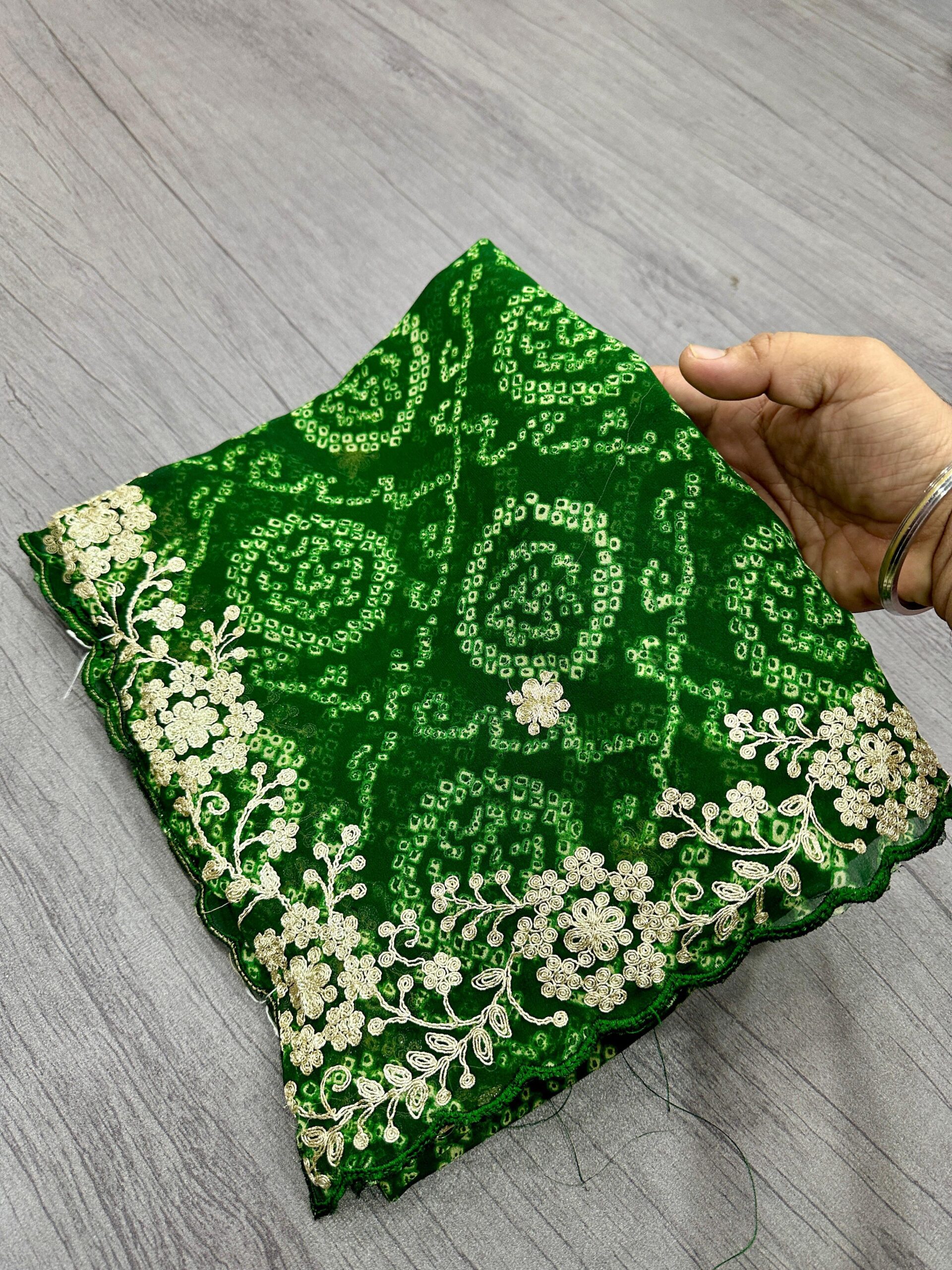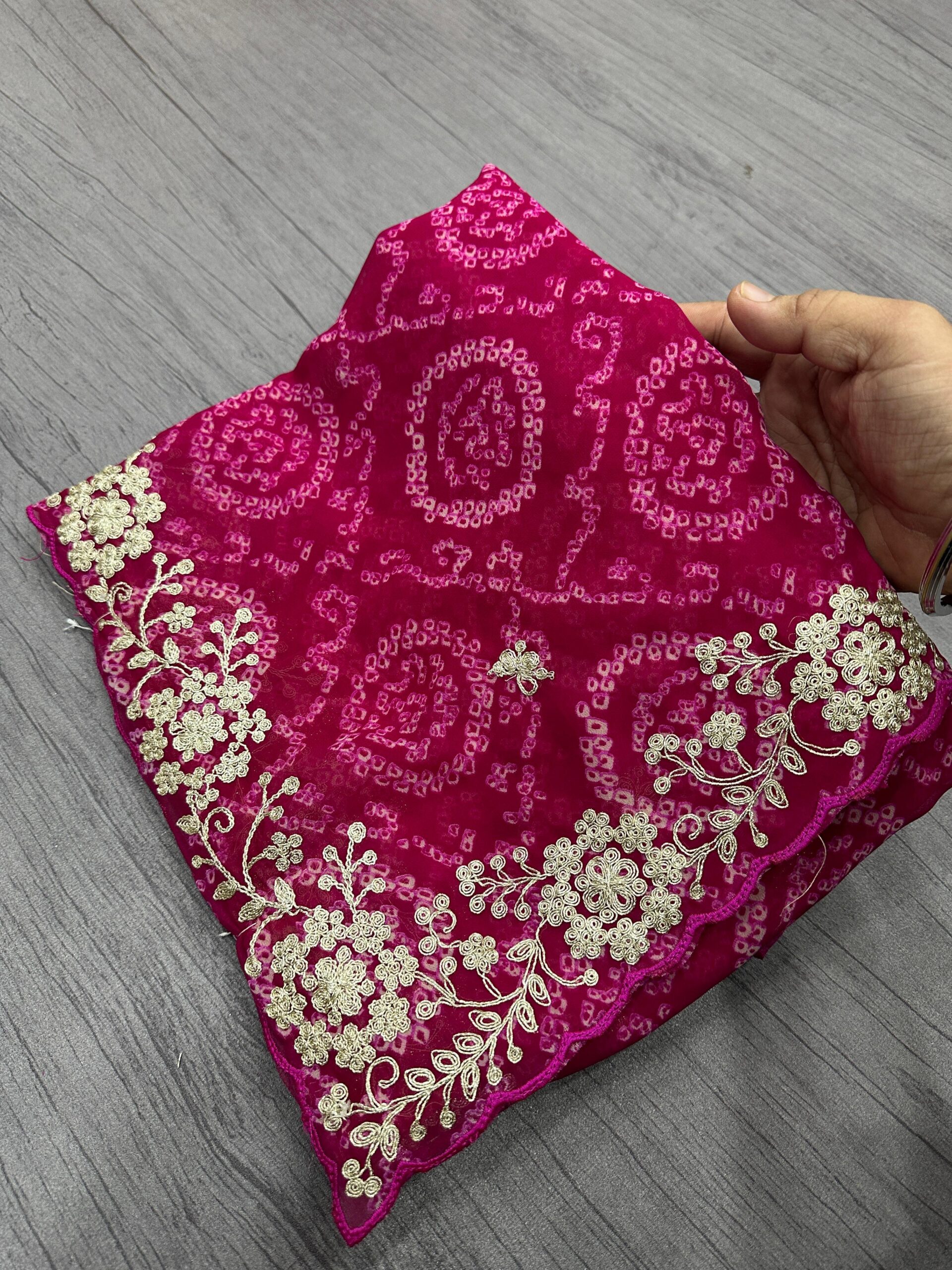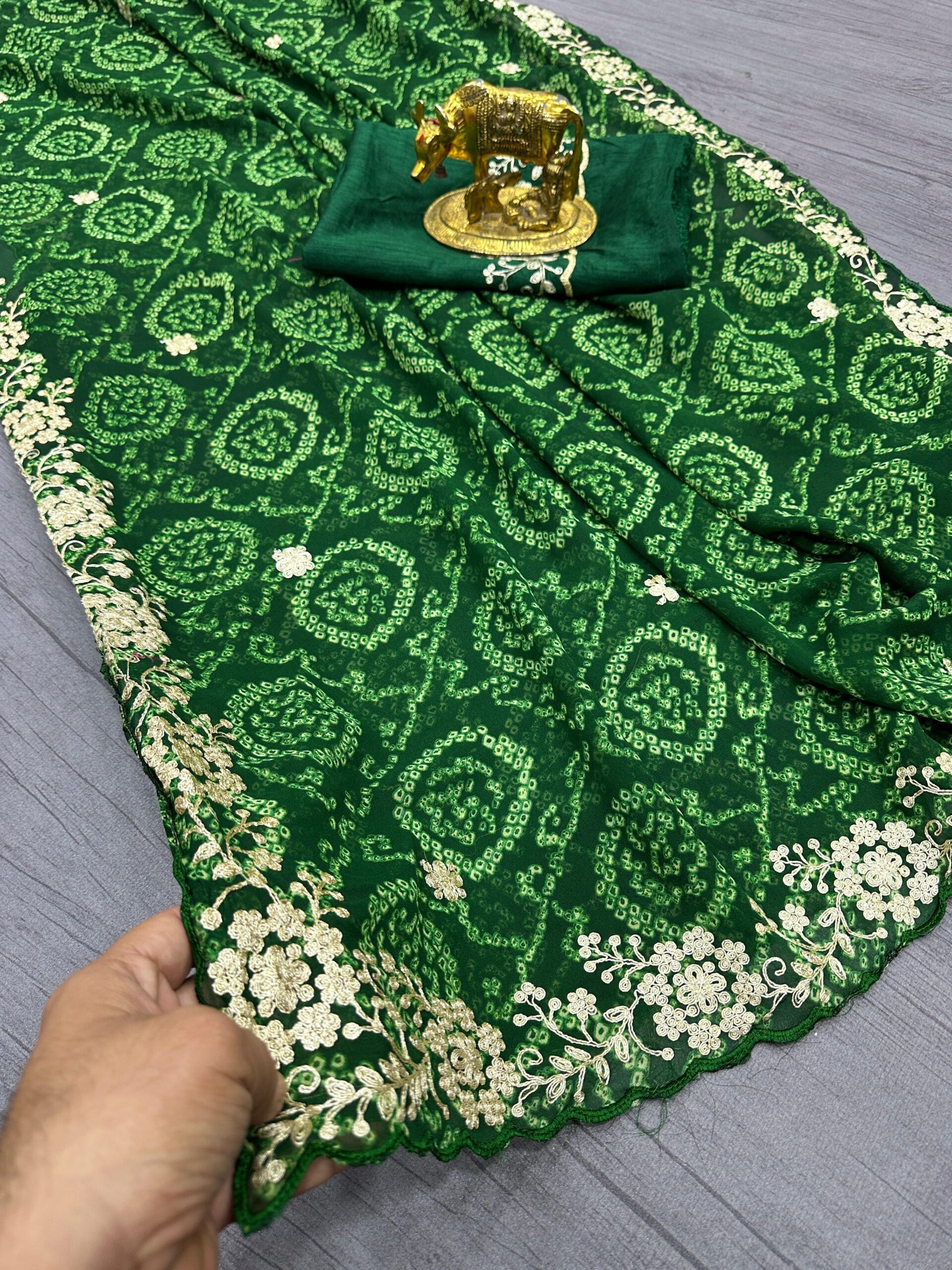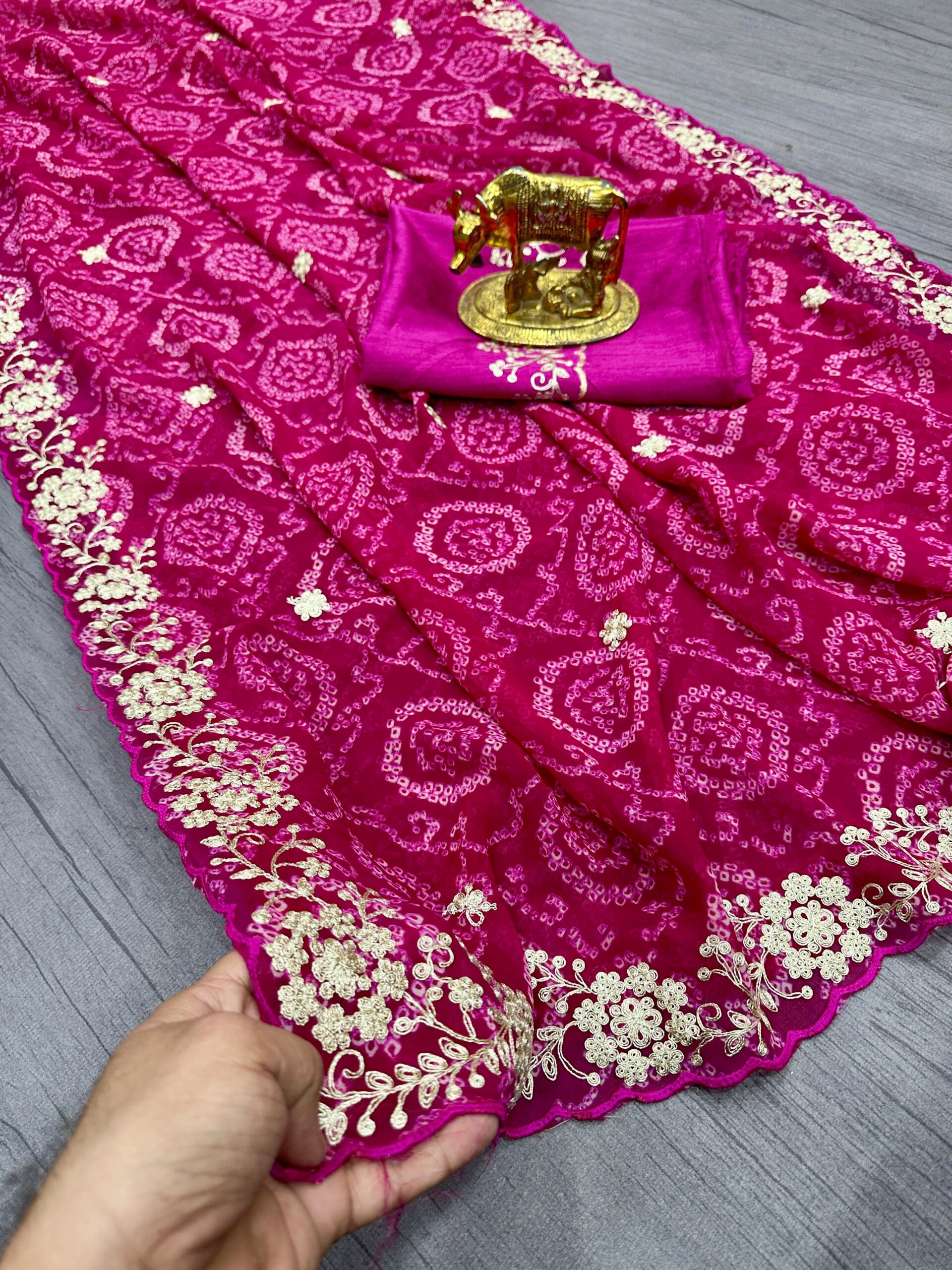 Presenting The *Pure CxC Georgette* Saree with Luxury *Bandhani Print* With *Trending Heavy Unique Pita Work* in C~Pallu Work & Border😊